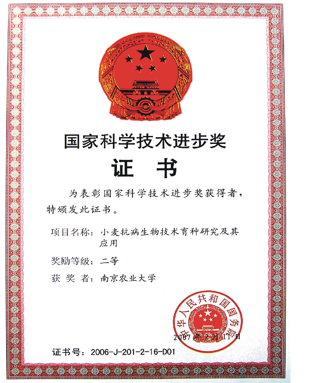 奖励日期:2006年