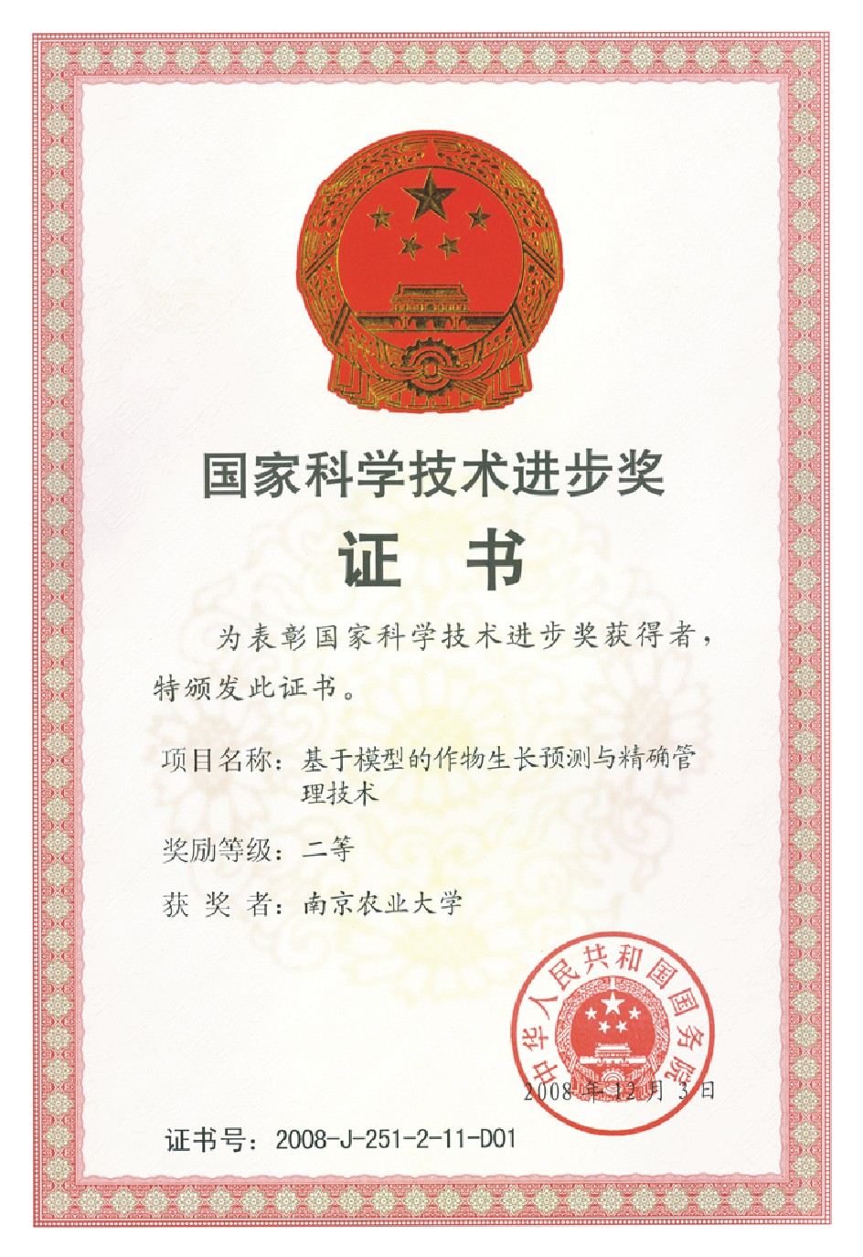 授奖部门:国务院