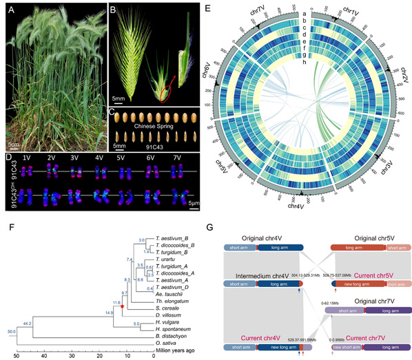 小麦野生资源蕴藏着很多优质、高产、抗病虫、抗逆等优异基因,是小麦遗传改良的基因资源库,可以通过远缘杂交将其有益基因导入普通栽培小麦中国利用。簇毛麦(Dasypyrum villosum,又名 Haynaldia villosa, 2n = 2x = 14,基因组VV)是小麦族、簇毛麦属一年生异花授粉二倍体植物。早在上世纪80年代,肉漫屋 细胞遗传研究所发现引自英国剑桥的簇毛麦91C43高抗白粉病,利用远缘杂交和染色体工程,创造了携带白粉病基因Pm21的小麦-簇毛麦6VS/6AL易位系,成为我国小麦抗病育种主要抗源,育成了50余个小麦品种,相关研究获得国家发明二等奖。此后研究还发现,簇毛麦兼抗多种病害,并且具有品质相关优良基因,但由于缺乏高质量参考基因组,簇毛麦优异基因挖掘效率较低,优异性状形成机制解析不够。