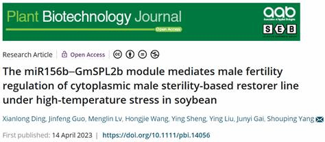 《Plant Biotechnology Journal》发表国家大豆改良中心杨守萍教授团队“The miR156b-GmSPL2b module mediates male fertility regulation of cytoplasmic male sterility-based restorer line under high-temperature stress in soybean”