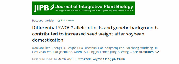 《JIPB》发表国家大豆改良中心盖钧镒院士团队“Differential SW16.1 allelic effects and genetic backgrounds contributed to increased seed weight after soybean domestication”