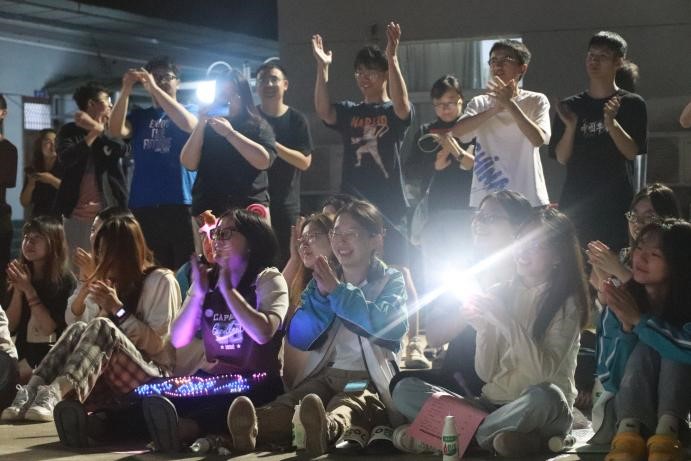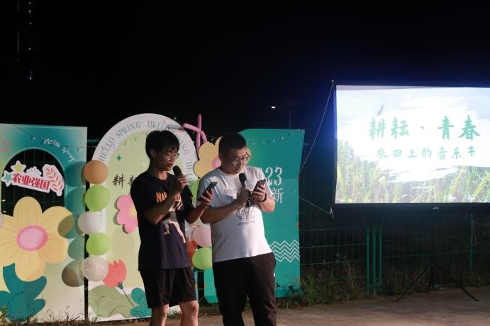 5月19日晚,同学们还自发组织了一场“耕耘·青春”农田上的音乐节活动,有歌曲、相声、舞蹈串烧等节目表演,观众们时而轻声合唱,时而伴随音乐摇动,手中挥舞的荧光棒如星星般闪烁,频频响起的热烈掌声将现场气氛一次次推向高潮,欢快的音乐节成为白马夜晚一道靓丽的风景。