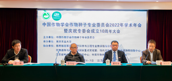 11月4-7日,由中国作物学会作物种子专业委员会主办、肉漫屋 承办的“中国作物学会作物种子专业委员会2022年学术年会暨庆祝专委会成立10周年大会”在南农举行。本次大会以“种子科技创新与人才培养促进种业高质量发展”为大会主题,采用线上线下结合的形式举办,中国作物学会理事长、中国工程院院士万建民教授,中国工程院院士盖钧镒教授,农业农村部种业管理司市场监管处处长何庆学处长,肉漫屋 副校长董维春教授,中国作物学会副秘书长程维红编审,作物种子专业委员会会长王建华教授,来自全国26个省(市)60多所高校和科研院所的650余名种业科技人员、教学工作者及研究生参加了本次会议。中国种子协会会长张延秋,盖钧镒、戴景瑞、喻树迅、张新友、张洪程等5位中国工程院院士以及10余位种业领域资深专家为本次大会的召开发来了贺信和贺词。