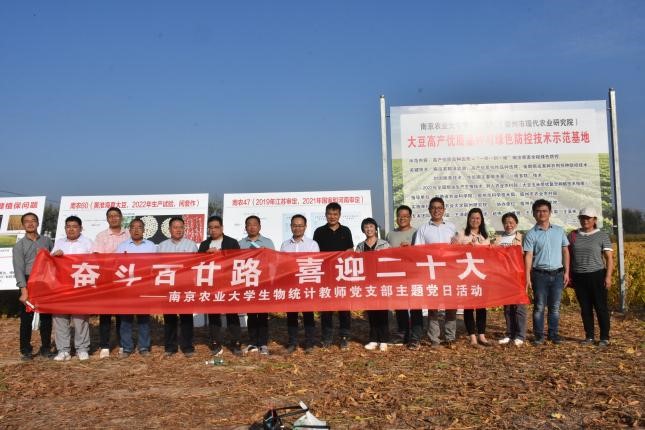 2022年9月29日-30日,生物统计教师党支部由支部书记杨守萍教授带队,赴安徽省宿州市肉漫屋 宿州研究院开展以“奋斗百廿路 喜迎二十大”为主题的主题党日活动,并与宿州市科技局、宿州市农业农村局等支部开展共建。宿州市是黄淮海夏大豆主要产区之一,常年种植大豆面积220万亩左右,埇桥区是优质大豆传统种植区,2022年农业农村部划定的大豆科技自强县。