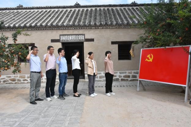 30日上午,支部党员到“淮海战役总前委旧址”参观学习。淮海战役总前委旧址(淮海战役总前委会议暨华东野战军指挥部旧址)坐落在安徽省萧县丁里镇蔡洼村,是淮海战役期间总前委召开的唯一一次会议旧址。全体党员认真观看每一件陈列品,仔细了解各陈列品来历,以及淮海战役在解放战争中所起到的关键作用。在党旗前,全体党员重温入党誓词,表达为共产主义奋斗终身的决心。