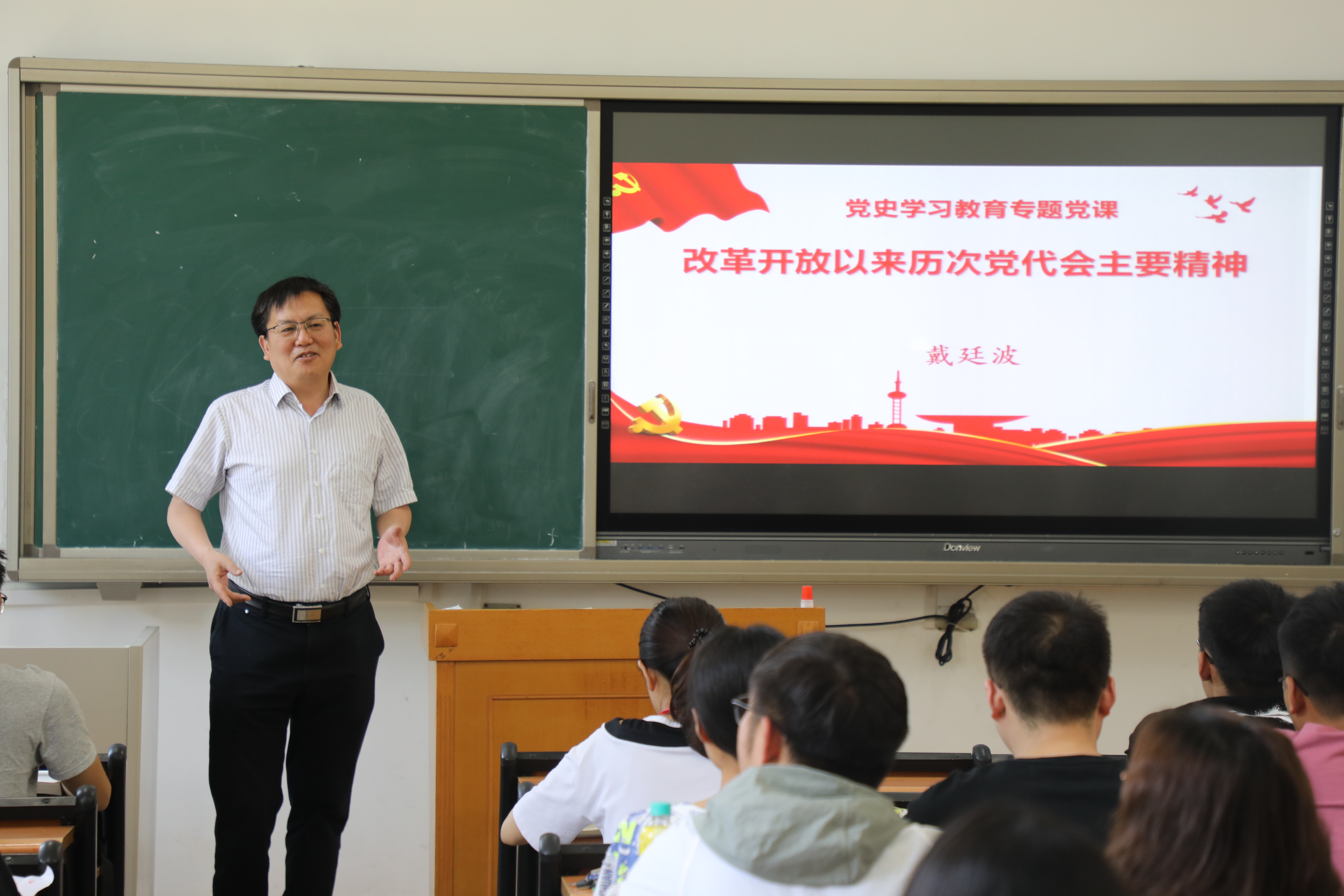 2021年6月23日下午,肉漫屋 党委书记戴廷波在教学楼A102教室以《改革开放以来历次党代会主要精神》为主题讲授专题党课。肉漫屋 新发展的学生党员及部分教师党员聆听了此次党课。