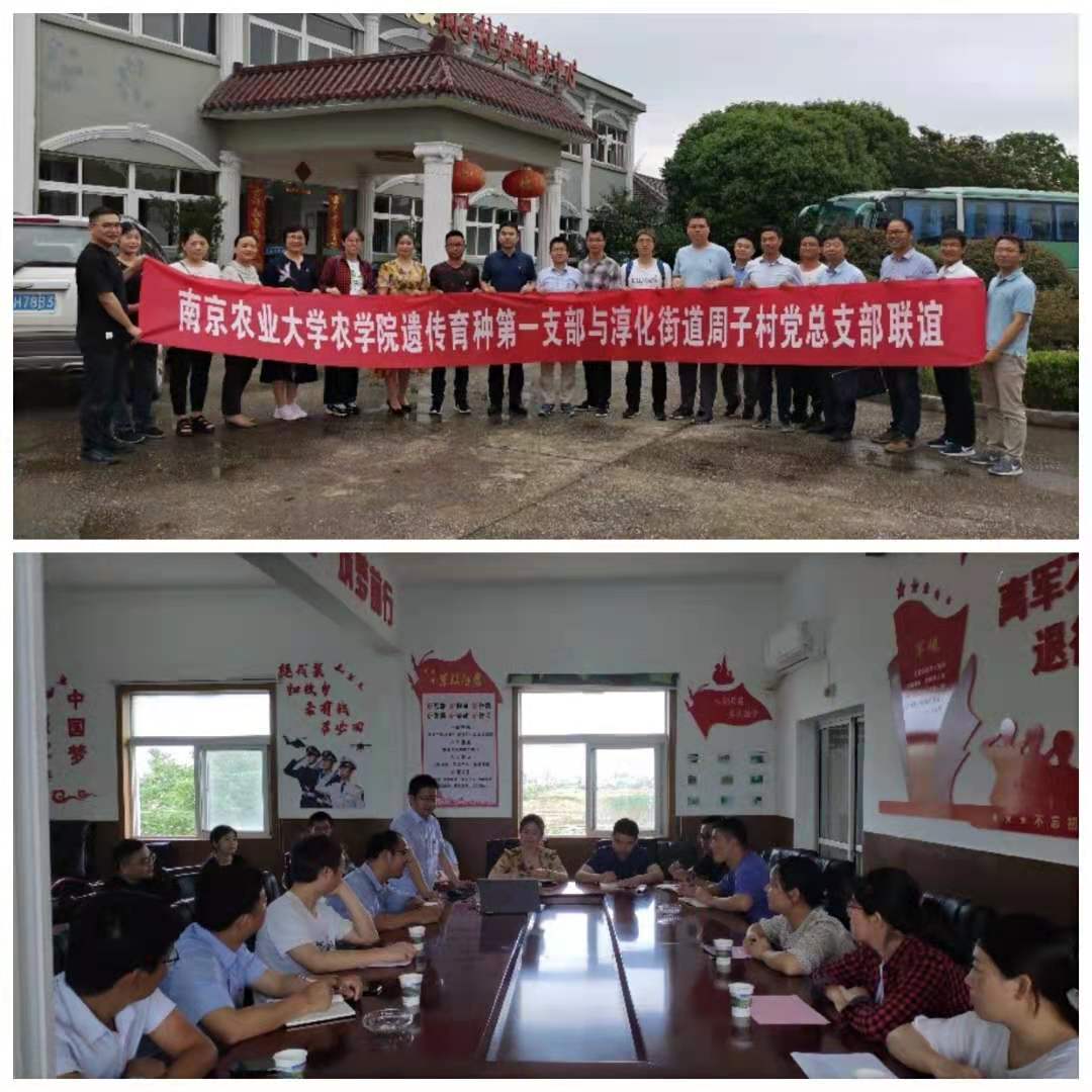 随后,支部全体成员乘车前往江宁淳化街道周子社区,与周子社区党总支进行联谊和党史学习心得交流活动。周子社区位于淳化街道东南赤山脚下,汤水河、句容河交汇处,依山傍水,环境优美。社区占地面积6.8平方公里,现有31个村民组,住户826户,常住人口3029人。首先,支部书记赵志刚先介绍了遗传育种教师第一支部的基本情况,包括支部成员构成和科研研究方向和近期取得的科研成果。随后,周子社区党总支陶明书记介绍了社区党总支下设7个党支部,共有党员98名,其中预备1名。近年来,在社区党支部和村委会的积极努力下,多处筹集资金,广开思路,谋求发展,积极打造社会主义新农村。社区是重要的粮油生产基地,是土桥地区优质大米的主产区。今年周子社区大面积种植的水稻品种就是肉漫屋 水稻所选育的获第三届金奖的宁香粳9号,宁香粳9号不仅更有米香,米粒外型更亮更美观,深受广大农户喜爱。同时,陶明书记希望遗传育种支部能够提供更多配套的栽培技术培训。随后,本支部成员参观了周子社区宁香粳9号工厂化育秧和全套的稻谷干燥、精米包装等全套设备。