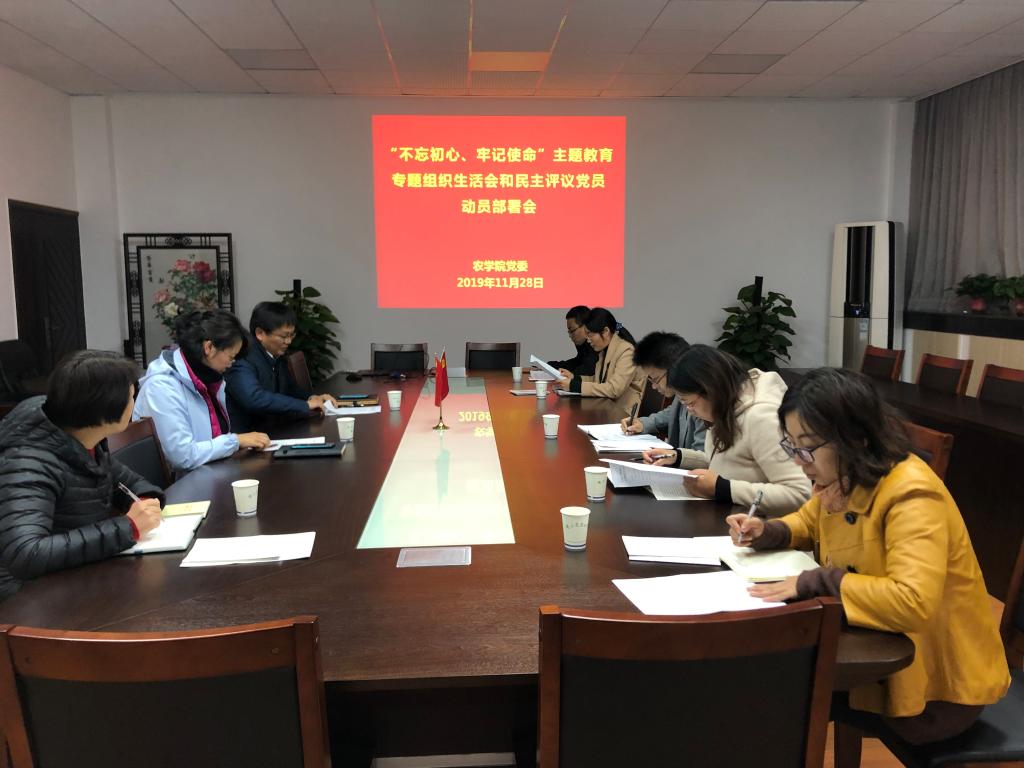 按照中央和教育部党组的工作部署,根据学校《关于在“不忘初心、牢记使命”主题教育中召开专题组织生活会和民主评议党员的通知》文件要求,2019年11月28日下午,肉漫屋 召开动员部署会议。院党委书记戴廷波、副书记殷美及各教师党支部书记参加此次会议。