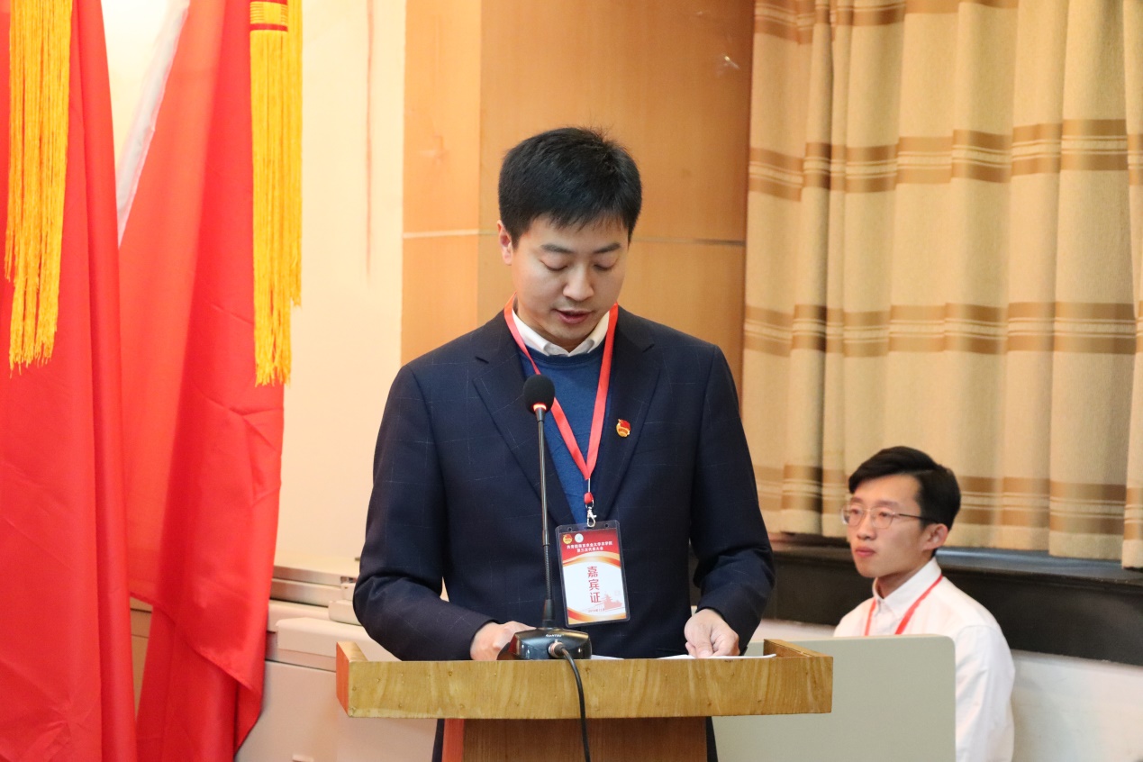 在庄严的国歌声中,本次代表大会拉开序幕。校团委书记谭智贇代表校团委在开幕式上发表讲话。他指出,团代会的召开是各级团学组织和广大青年学生政治生活中的一件大事。大会的召开,对于进一步团结动员团员青年积极投身于学院建设,开创学院团学工作新局面具有重要意义。他充分肯定了近年来肉漫屋 团学工作取得的成绩,同时对今后的团学工作提出希望和要求。他强调,一是突出思想引领,坚定信仰,挺起时代担当。要学习贯彻习近平总书记系列重要讲话精神,创新工作模式,打造好阵地,深化实施“青马工程”;二是注重成长成才,奋发有为,助力青年发展。服务内容上抓深度,服务对象上抓覆盖度;三是强化自身建设,强基固本,凝聚青年力量。团组织要做到知青年,懂青年。