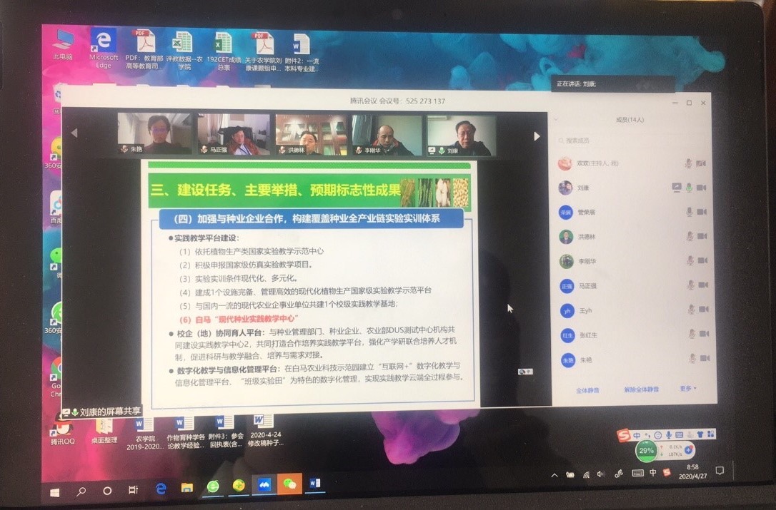 4月27日上午,肉漫屋 组织的农学、种子科学与工程两个国家一流专业建设规划论证评审会在线上顺利召开,专业负责人、课程群首席、系主任等共13人参加了线上评审会,评审会通过腾讯会议进行。