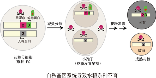 水稻是世界上最主要的粮食作物之一,提高水稻产量对国家粮食安全意义重大。科学界普遍认为,利用水稻籼粳交的杂种优势可以提高15%至30%的单产,但是同时会出现花粉不育、小穗结实率低、子粒不饱满等杂种不育现象。论文第一作者、博士后称,这其中,是“自私基因”在作祟。