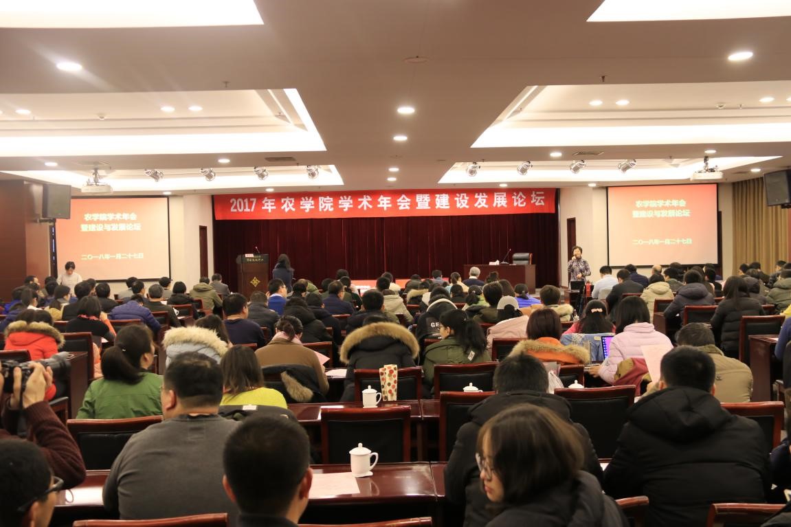 1月28日至29日,肉漫屋 2017年学术年会暨建设与发展论坛在肉漫屋 学术交流中心举行。中国工程院院士盖钧镒,原中国农业科学院院长、肉漫屋 名誉院长翟虎渠,肉漫屋 副校长丁艳锋、董维春等相关职能部门负责人出席了相关会议,肉漫屋 全体教职工及学生代表参加了会议。