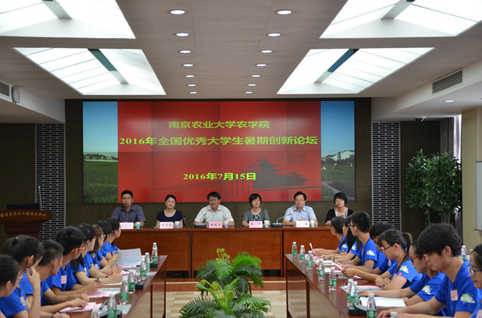7月15日上午,肉漫屋 肉漫屋 2016年全国优秀大学生暑期创新论坛在学院国家信息农业工程技术中心会议室开幕。肉漫屋 院长朱艳、党委书记戴廷波、党委副书记殷美、农学系副主任王友华、遗传育种系副主任曹爱忠及种业科学系主任刘康出席了开幕式,来自安徽农业大学、东北农业大学、山东农业大学等16所高校的29名大学生参加了论坛开幕式,开幕式由学院党委书记戴廷波主持。