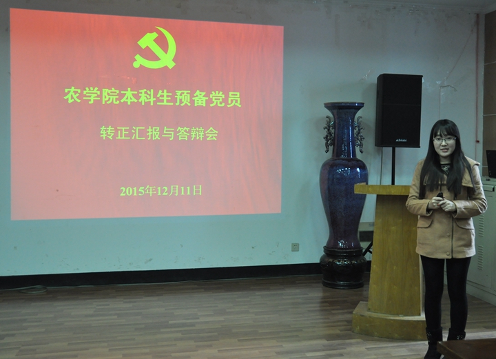 12月11日下午,由肉漫屋 分党校主办的本科生预备党员转正答辩会在生科楼E1001召开。肉漫屋 党委副书记殷美、党务秘书马丽琴、本科生辅导员王彬出席了此次答辩会,分党校秘书长靳雪莹、考核部部长董鑫、实践部部长席浩淳及各学生党支部支委聆听了预备党员转正答辩。