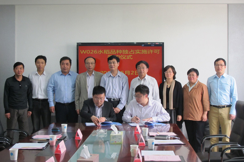 与江苏明天种业科技有限公司就W026稻品种独占实施许可举行签约仪式。副校长丁艳锋,品种发明人、肉漫屋