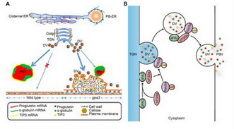 稻米中含有大量的贮藏性蛋白质,它是稻米中仅次于淀粉的第二大物质。其中谷蛋白是水稻种子中含量最高的贮藏蛋白,占种子中总蛋白的70%以上,它对稻米品质的优劣及营养价值起着重要作用。谷蛋白首先在胚乳细胞中内质网上以57kDa前体的形式合成,经过复杂的囊泡运输过程,转运到蛋白质贮藏液泡(PSV)中,经进一步加工,最终聚集形成二型蛋白体(PBII)。但我们对谷蛋白前体的囊泡运输过程、定向分选的分子机理知之甚少。
