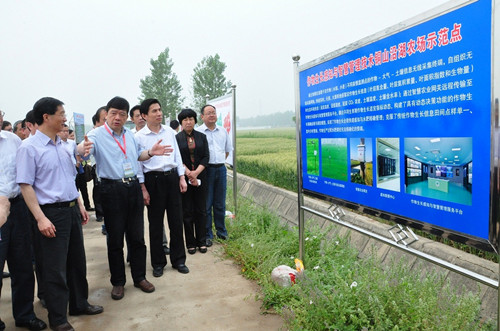 会议期间,与会专家和领导还现场考察了位于铜山区沿湖农场的小麦精确栽培技术示范基地,听取了国家信息农业工程技术中心刘小军副教授的现场介绍。在示范现场,专家们了解到,采用精确方案的小麦示范田块较常规方案平均增产17公斤左右,比农户方案增产28公斤左右,村级精确方案比全区平均增产13公斤左右,且精确栽培方案具有明显的节氮、省种、省药等优点,每亩增收节本约50余元。