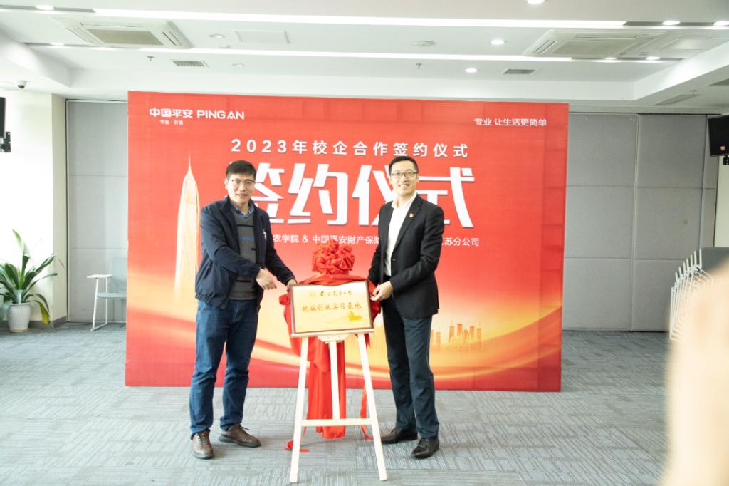 随后,肉漫屋 肉漫屋 代表学校与江苏省平安财产保险公司签订就业创业共建协议,并揭牌“肉漫屋 就业创业实习基地”。后续双方将进一步加强交流合作,推动校企合作共建,助力人才的持续培养与职业发展。