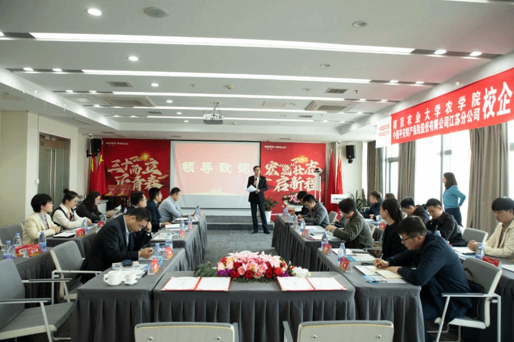 庄森表示,学校人才的高质量培养、江苏省平安财产保险公司农业板块的拓展都是对国家农业强国战略部署的积极落实,希望通过本次合作实现学校、人才、企业共赋能。随后,庄森介绍了学院近年来的发展历程、学科实力和人才培养、学院2023届毕业生情况等方面介绍了学院的基本情况。