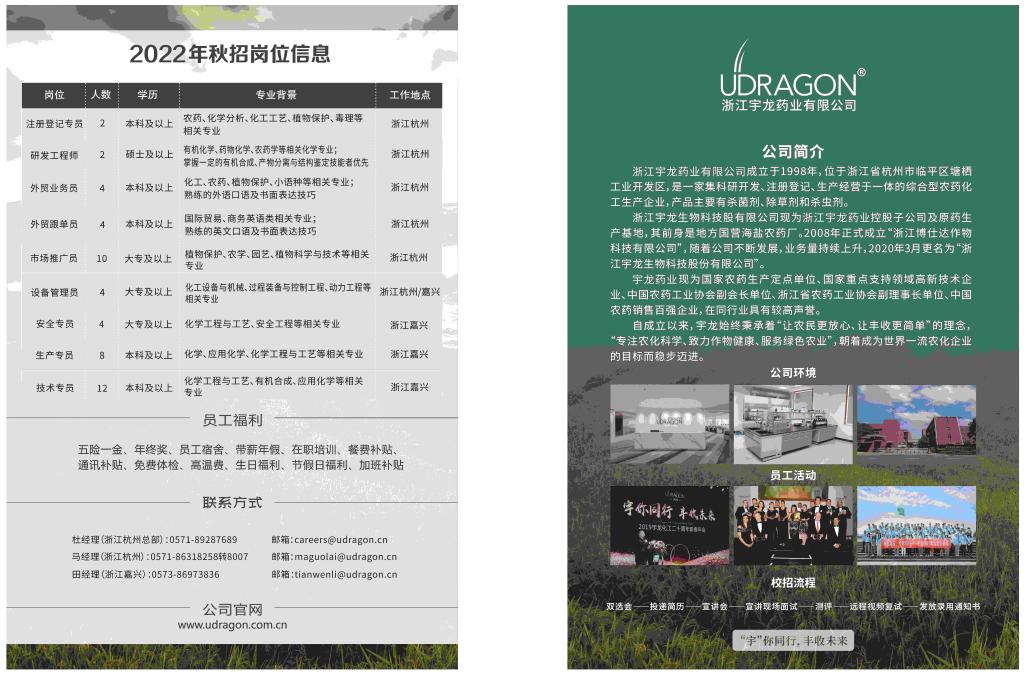 浙江宇龙药业有限公司成立于1998年,位于浙江省杭州市临平区塘栖工业开发区,是一家集科研开发、注册登记、生产经营于一体的综合型农药化工生产企业,产品主要有杀菌剂除草剂和杀虫剂。宇龙药业现为国家农药生产定点单位、国家重点支持领域高新技术企业、中国农药工业协会副会长单位、浙江省农药工业协会副理事长单位、中国农药销售百强企业,在同行业具有较高声誉。