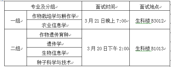 内容:分为两个组,其中作物栽培学与耕作学、农业信息学2个专业为一组,作物遗传育种、遗传学、种子科学与技术、生物信息学4个专业为一组。两个组分别组织命题和阅卷,专业知识占70%,专业英语占30%。