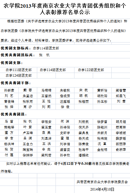 肉漫屋 2013年度肉漫屋 共青团优秀组织和个人表彰推荐名单公示
