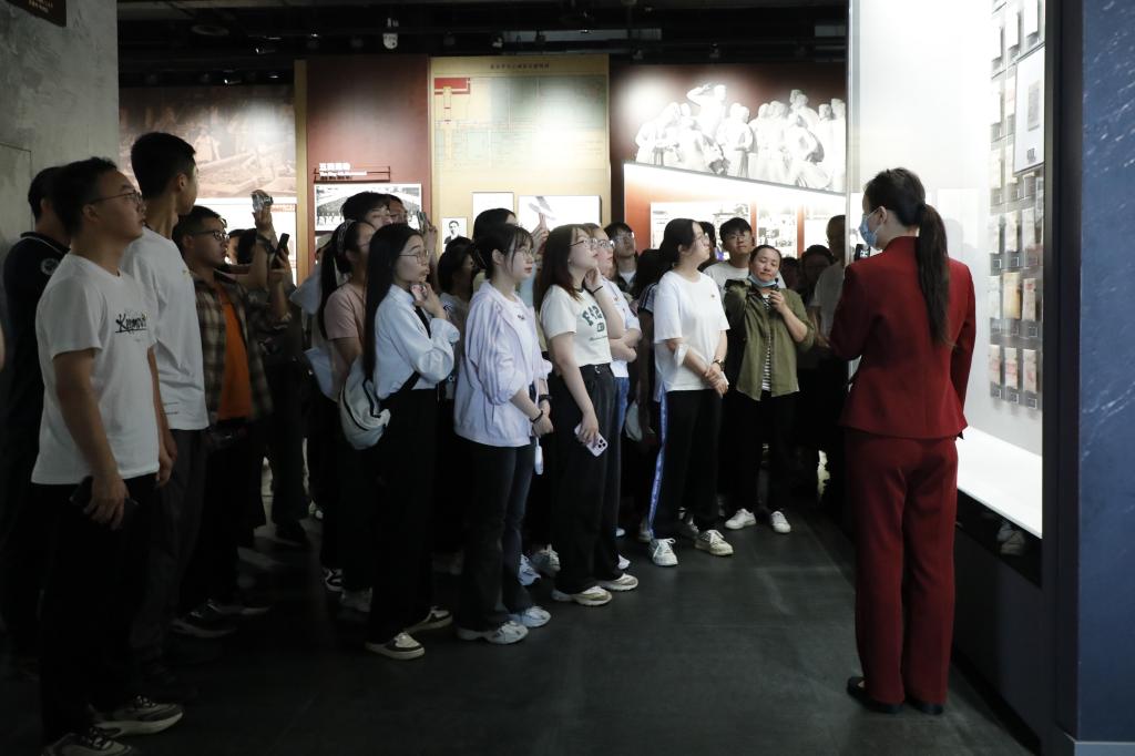 每一件珍贵的文物、每一幅宏伟的壁画、每一尊生动的雕塑,无一不诉说着那个风起云涌、惊涛骇浪的时代。馆内陈列的红船模型为我们沉浸式展现了中共一大召开的场景。代表们轻呼出的“马克思主义万岁!中国共产党万岁!中国万岁!世界劳工万岁!”却是时代的最强音。同学们认真听着讲解,仿佛置身那个时代,感受到了最炽热的革命精神和最崇高的理想信念。