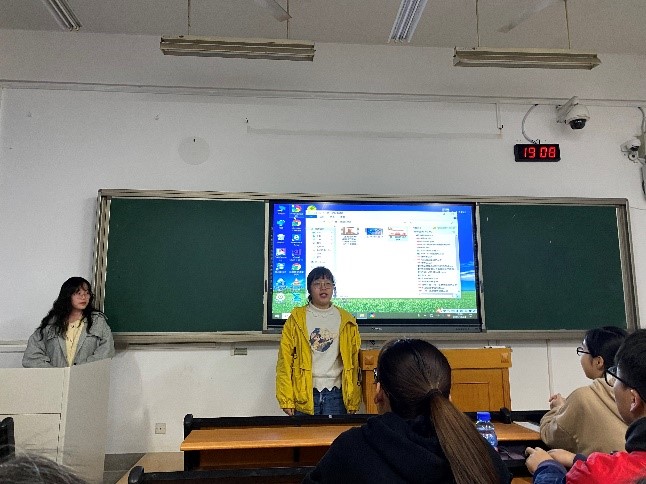 在欢迎完新进的积极分子后,张韵千简单的提出了对他们的期望和对支部中老同志们的要求,随后便由支部第一小组的同学们为大家带来主题为“从孟晚舟归国事件看大国底气”的汇报。