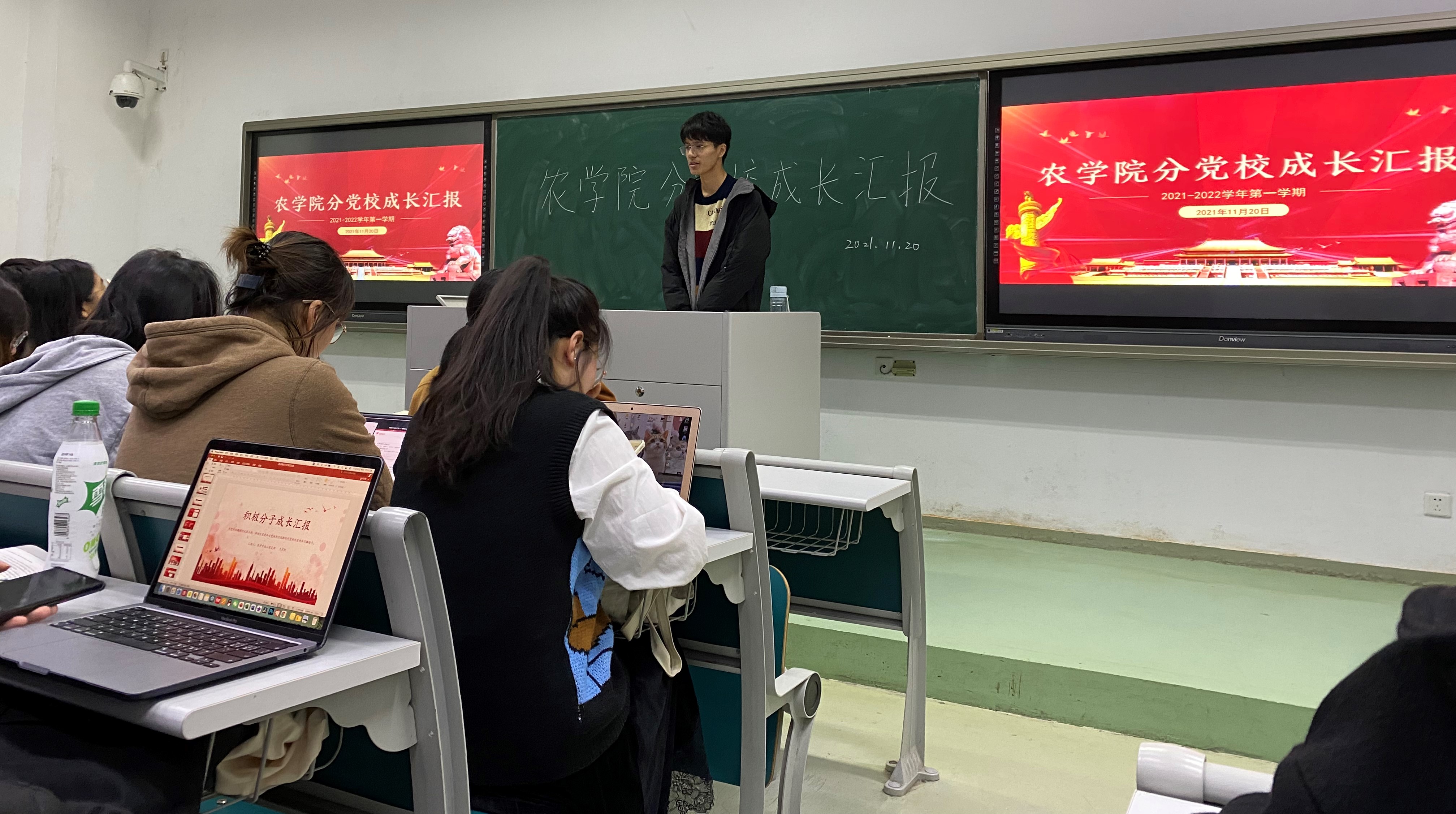2021年11月20日晚,肉漫屋 分党校2021年秋季学期本科生预备党员、入党积极分子成长汇报会在主楼顺利举行。参加本次成长汇报会的有肉漫屋 本科生辅导员孙小雯、高强、分党校秘书长戚浩男、教学实践部部长徐华楠、学员管理部部长罗昫之、杜超月、各党支部书记与支委,部分预备党员、满一年期及以上入党积极分子进行汇报。