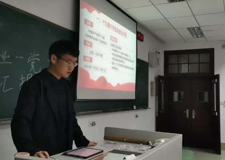 郑高源同学向与会成员介绍了十九届六中全会召开的时间、地点及主要内容。