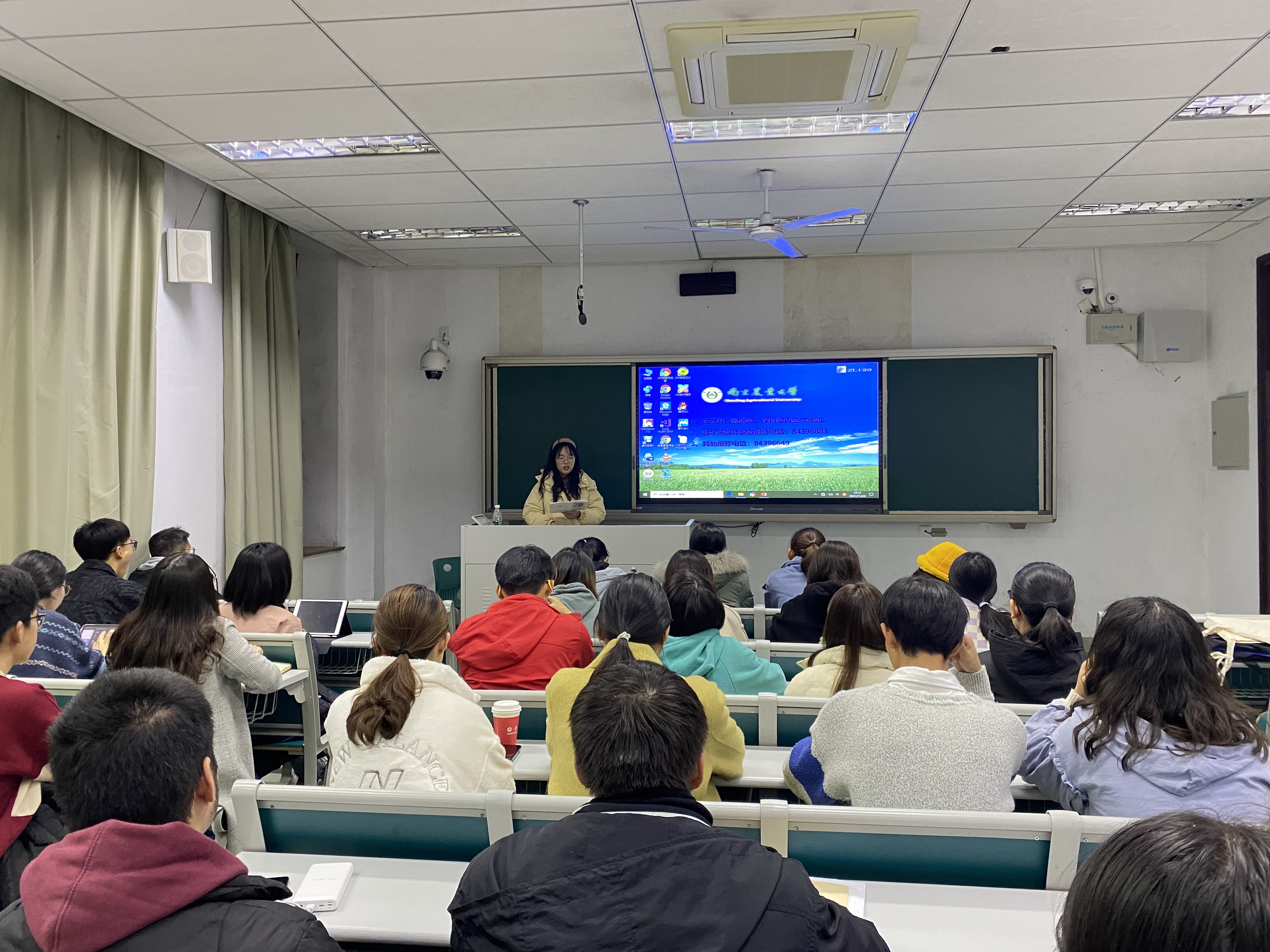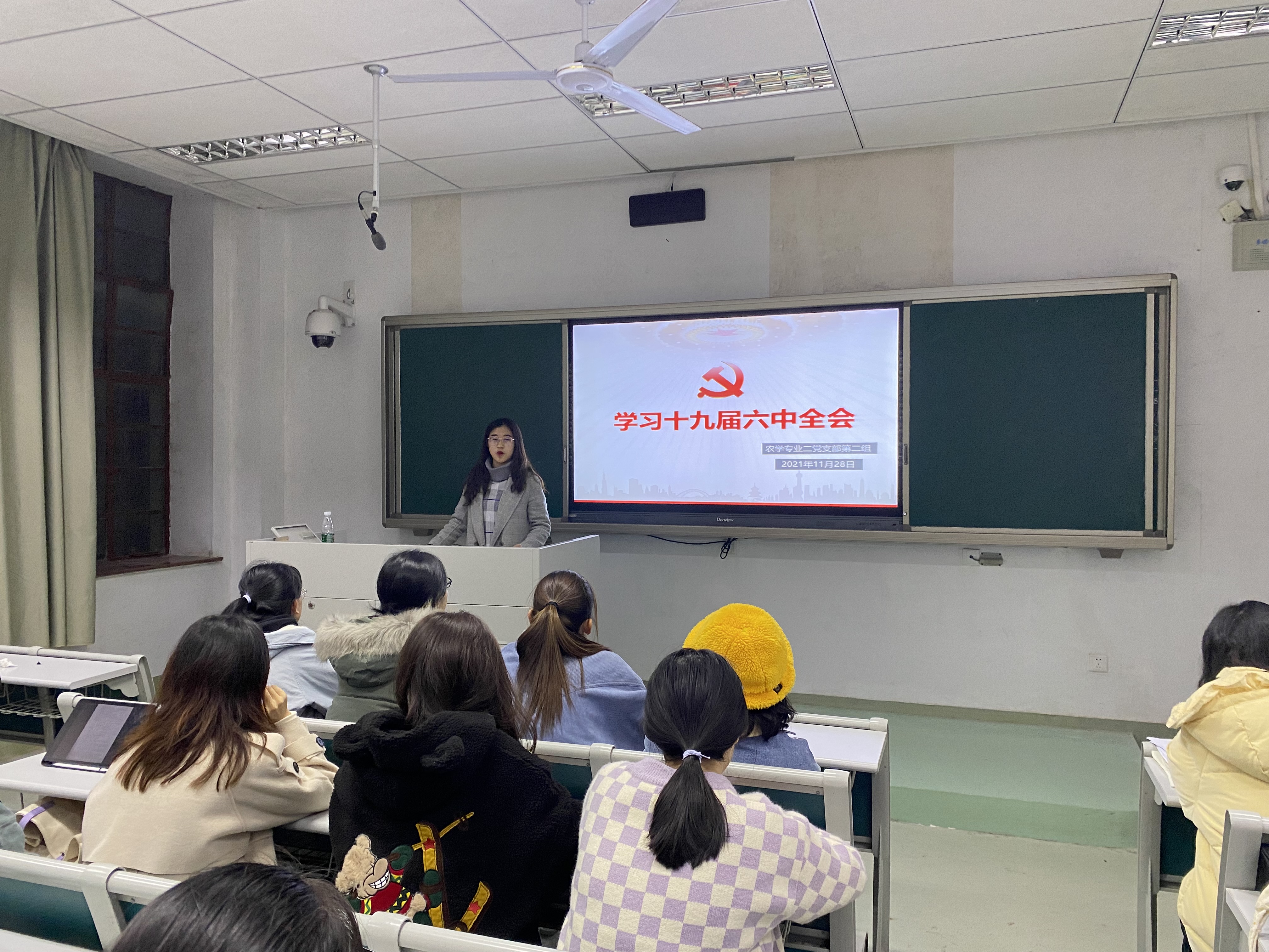 2021年11月28日晚,农学专业二党支部于主楼120召开十一月份的分班讨论,讨论主题为“学习十九届六中全会精神”。本次分班讨论由农学专业二党支部书记张韵千主持。