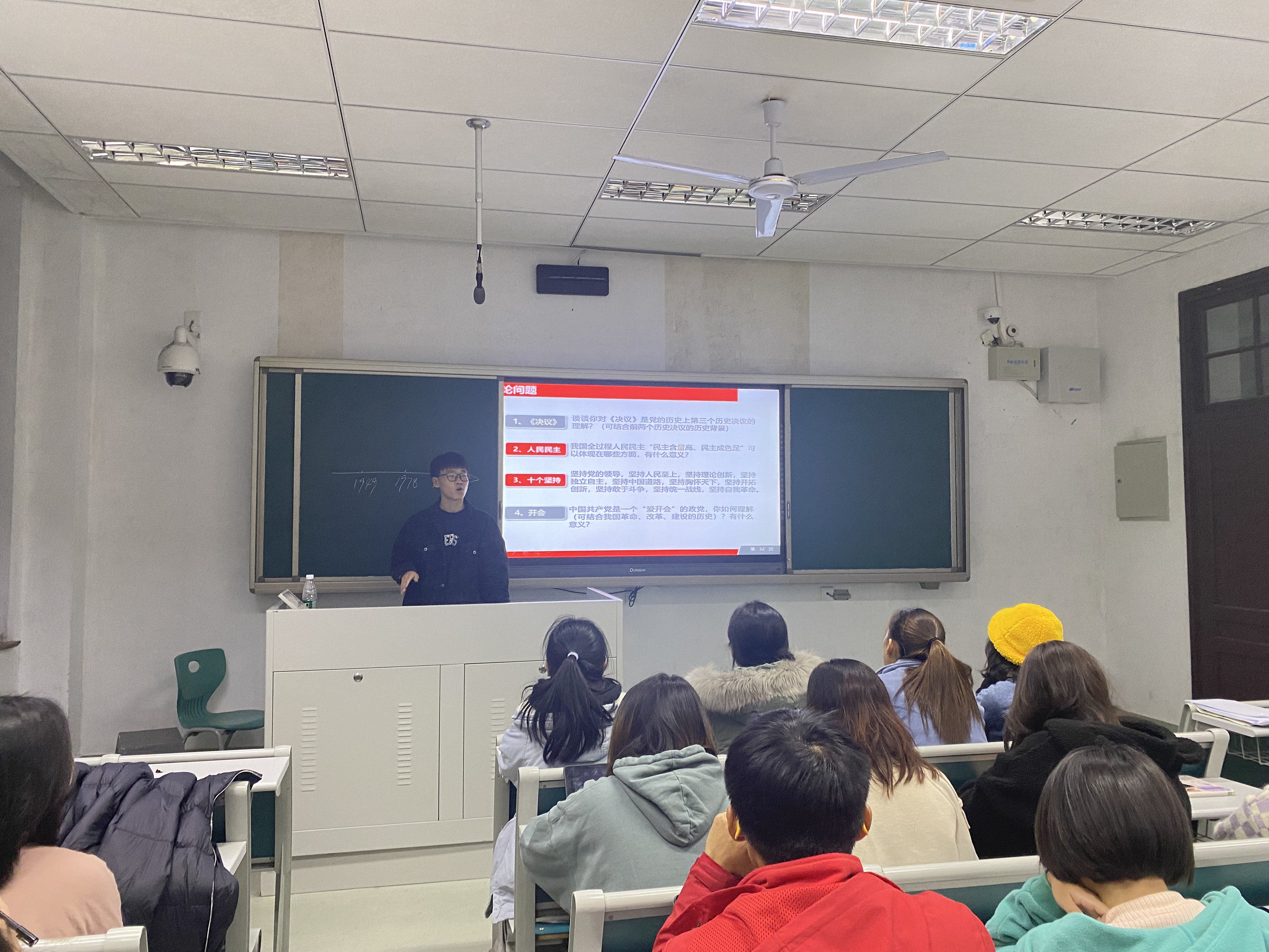 最后,在胡龙龙同学的主持下,大家就“决议”、“人民民主”、“十个坚持”和“开会”四个问题展开了热烈的讨论。