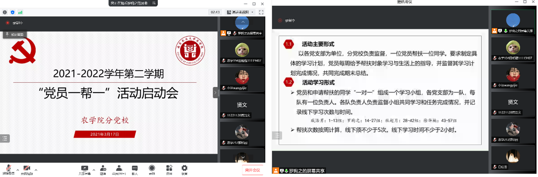 分党校以线上腾讯会议的形式开展“党员一帮一”启动仪式。肉漫屋