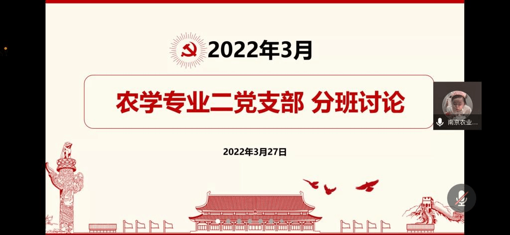 2022年3月20日13点30分,由于疫情防控要求,农学专业二党支部于腾讯会议线上召开三月份的分班讨论,讨论主题为“2022北京冬奥会‘圆梦冰雪,相约未来’”。本次分班讨论由农学专业二党支部书记张韵千主持,全体党员与积极分子参与。