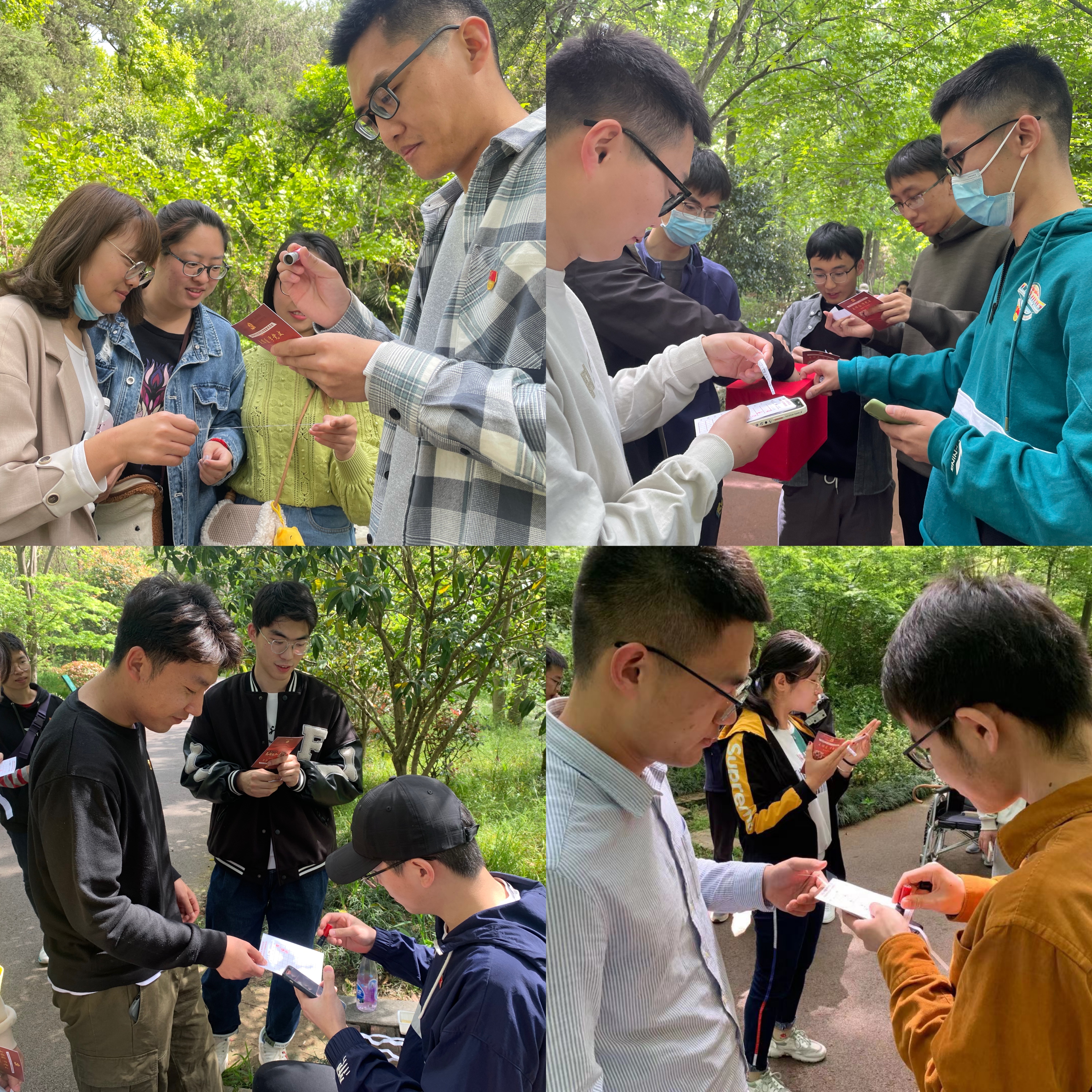 2021年是中国共产党成立100周年,为贯彻落实习近平总书记在党史学习教育动员大会上提出的重要指示精神,引导同学们深刻铭记中国共产党百年奋斗的光辉历程,4月17日上午,肉漫屋 分党校、团委、研究生会举办了“走绿道,学党史”活动。活动将走绿道和党史知识竞答融为一体,从中山陵绿道起点到流徽榭,安排10个答题站点,每个站点分别由10个研究生党支部设置建党百年来每10年的相关知识,同学们可以在答题站点抽取不同分值的题目作答,并在积分卡上打卡盖章,最后根据总分进行评比。