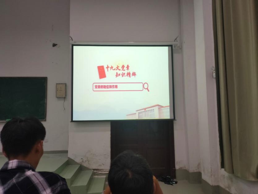 接着大家进行了十九大党章的理论学习,了解了党章的地位和作用。党章是具有最高权威的党内法规,是党的根本大法。党章能够调整党内关系,指导党的工作,严格党的纪律,支部成员对党章的重要性都有了更深刻的认识,对党的建设也有了更进一步的了解。同时大家还在视频中重温入党誓词,坚定入党初心。