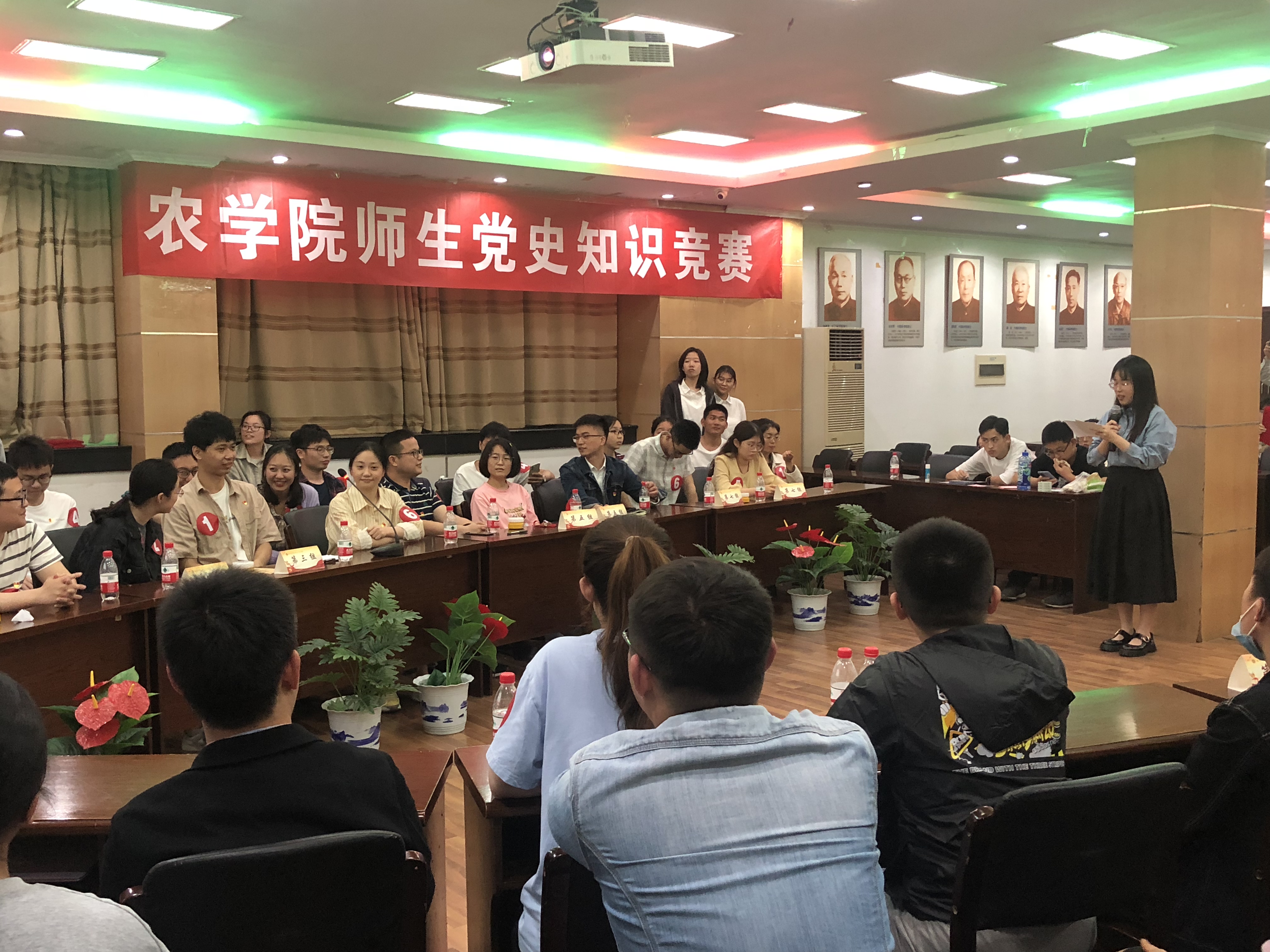 建党百年之际,为扎实推动党史学习教育深入开展,引导广大师生回顾党的光辉历程,继承和发扬党的光荣传统和优良作风,做到学史明理、学史增信、学史崇德、学史力行。5月12日晚,肉漫屋 师生党史知识竞赛决赛在生科楼E1001报告厅顺利举行。通过院内初赛选拔,肉漫屋 教师党支部和本、研党支部共组建8支队伍进入决赛阶段。肉漫屋 党委书记戴廷波、副书记殷美出席本次比赛。