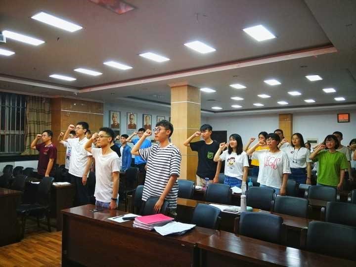 最后,在李雅澜,江瑞波两位同学的带领下,同学们进行了庄严的宣誓,第三次分班讨论圆满结束。