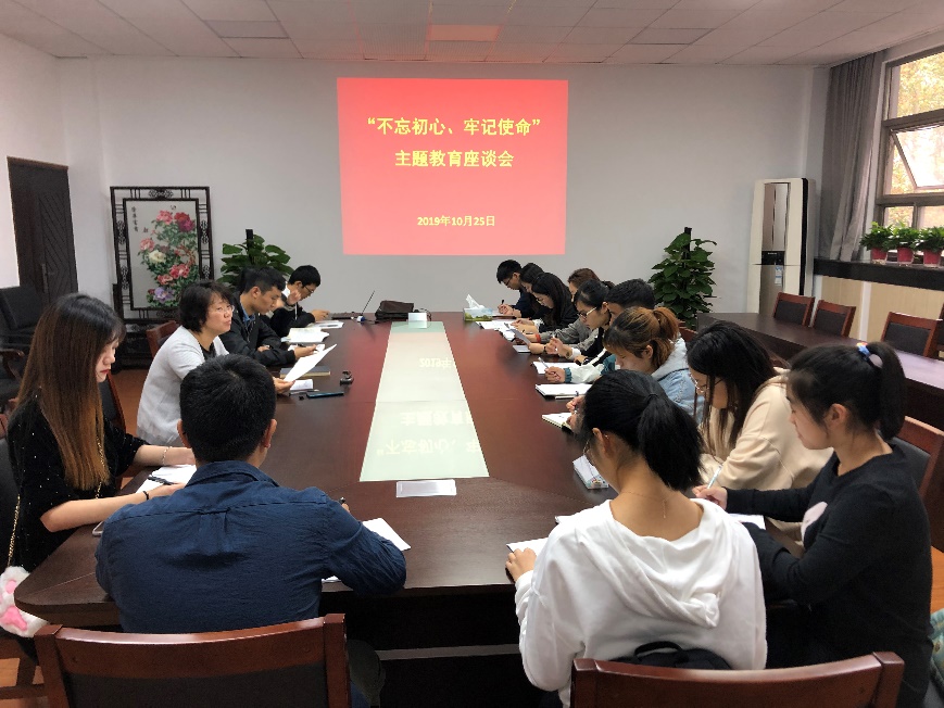 10月25日下午,肉漫屋 “不忘初心、牢记使命”主题教育座谈会在学院会议室召开,学院党委副书记殷美、辅导员王彬、许娜及本科生、研究生各党支部书记出席。本次会议由殷美主持。