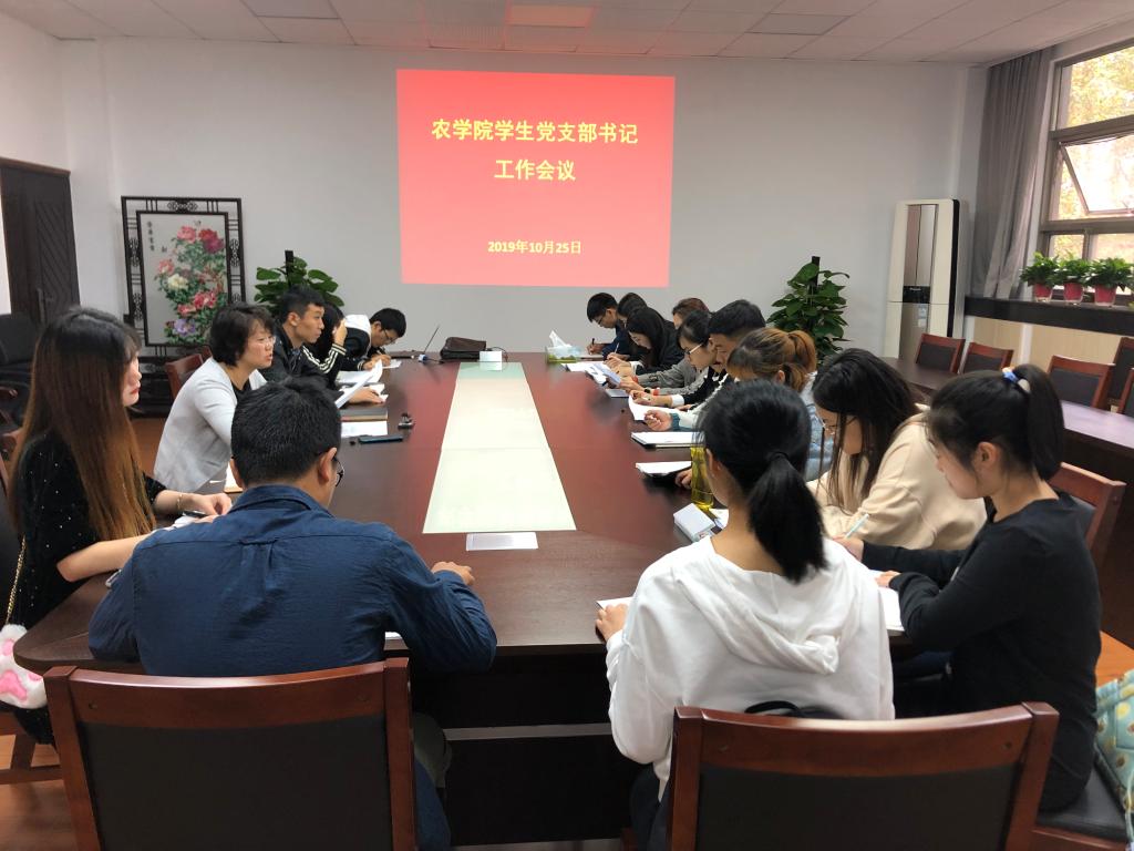10月25日下午,肉漫屋 学生党支部书记在学院会议室召开工作会议。学院党委副书记殷美、辅导员王彬、许娜及全体本研支部书记参加会议。