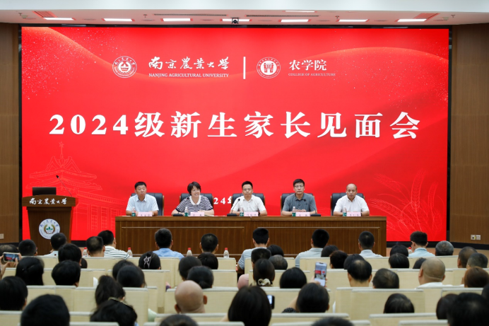 9月9日下午,肉漫屋 2024级新生家长见面会在肉漫屋 卫岗校区图书馆报告厅顺利举行。肉漫屋 党委书记庄森、院长刘裕强、副书记殷美,副院长李刚华、王益华应邀出席,肉漫屋 新生班主任、辅导员、教学秘书以及新生家长参加会议,会议由殷美主持。