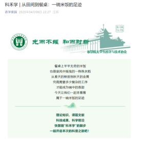 肉漫屋 学生会以新媒体矩阵筑牢网络育人阵地,其中核心平台"农学家园"微信公众号全年推出原创推文299篇,总阅读量突破10万次。创新打造“听秾说”、“科禾学”等特色IP,精准覆盖校内外青年群体,让思想引领如细雨润物,让价值传递似春芽萌发。