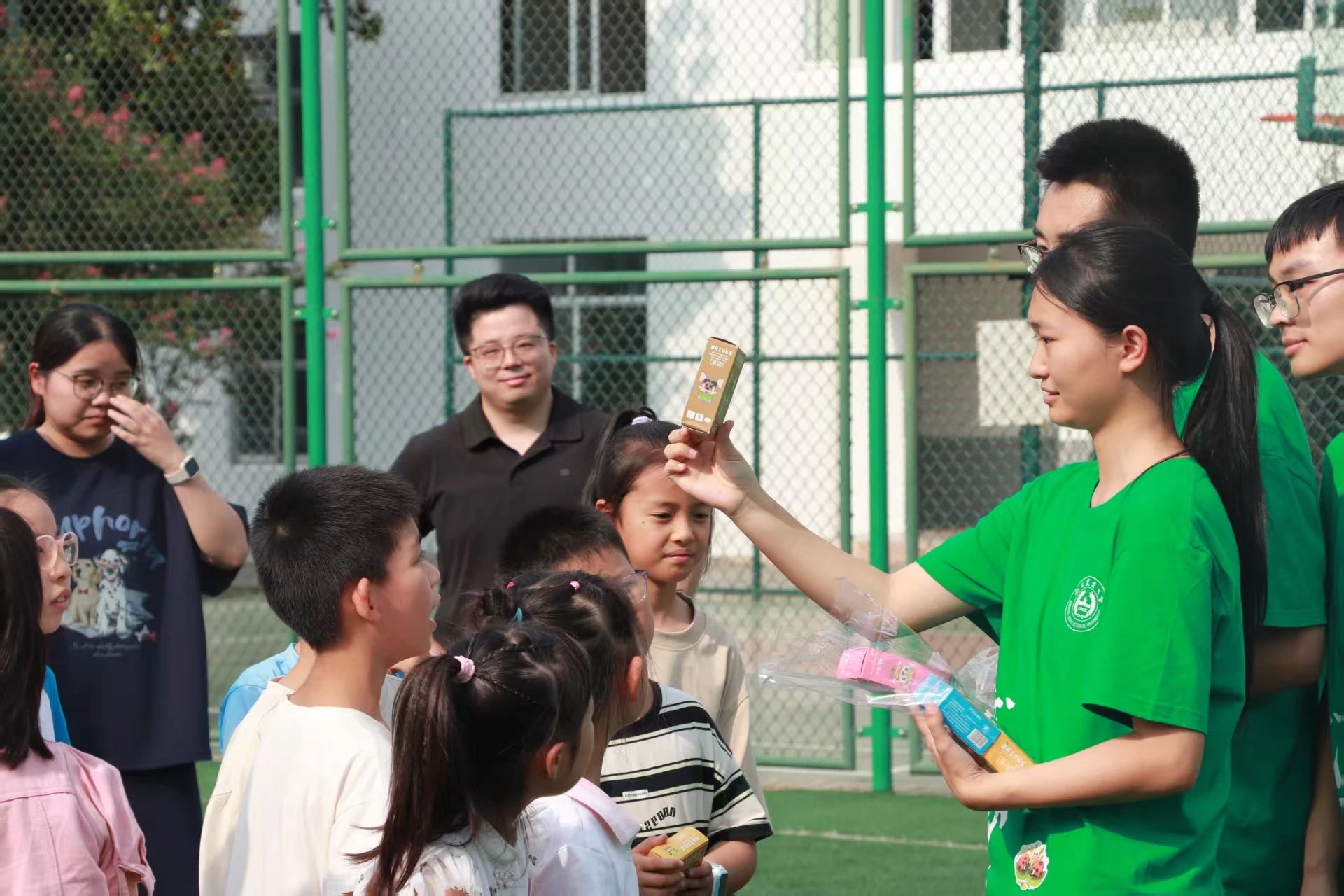 创意手工环节将活动推向高潮,孩子们化身 “黏土魔法师” 和 “七彩魔法师”,用黏土捏出充满童趣的立体造型,用彩笔描绘缤纷的丰收画卷,尽情发挥想象力与创造力。实践团为这些 “小魔法师” 送上日记本和积木作为鼓励。活动尾声,户外草坪上的迎面接力赛充满欢声笑语,孩子们在阳光下肆意奔跑、击掌接力,获胜小队手捧奖品积木,笑容格外灿烂。