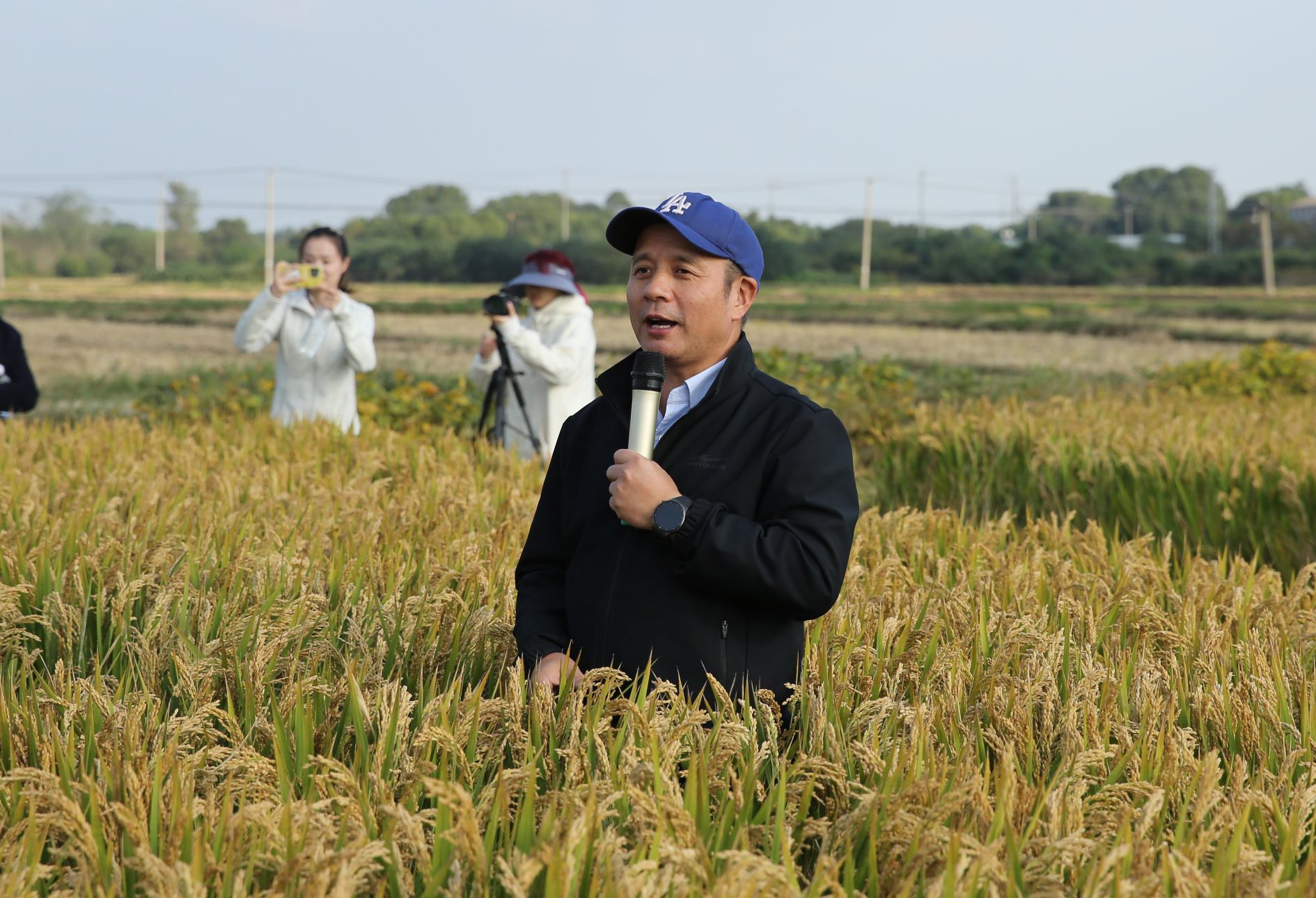 “眼前这片稻田,是南京市高淳区整建制开展稻麦(油)轮作单产提升项目核心片区!”肉漫屋 副院长、水稻精确定量栽培团队教授李刚华手持稻穗、站在丰收的稻田中介绍,“农场主一个人就能打理这么大面积的稻田,靠的可不是蛮劲,全是先进的农业技术在‘撑腰’!学校派驻专家团队驻点,把“高产秘籍”送到田间地头,让好种子配上好方法,既帮种植户提效增收,也让优质粮食走进更多人的餐桌。以‘良种+良法’助力高淳打造江苏粮食高产标杆区。”