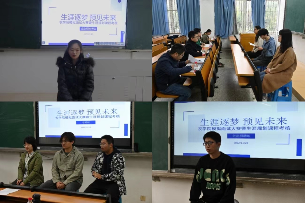 “各位面试官,大家好,我是来自肉漫屋 的……今天应聘的岗位是农业技术推广专员……”伴随着同学们自信的自我介绍,模拟面试拉开帷幕。“就你熟悉的作物,论述诱变育种的途径、方法及应用前景。”考研、保研类别面试组也如火如荼地进行,大家俨然置身于大四的方向抉择期,严肃而又慎重。