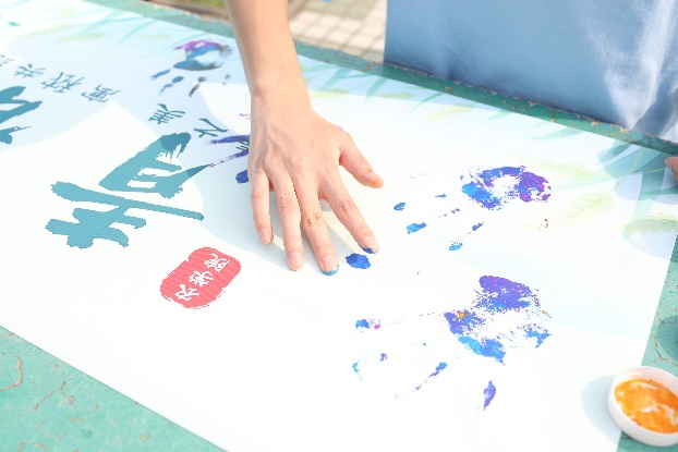 活动的最后,同学们在由学院提供的画作上,用颜料按下自己的手印,将所有人的青春印记都留在绘满秾情的作品中,共同绘制属于农学学子的青春之作。这幅画作不仅仅代表的是我们为自己的青春添上浓墨重彩的一笔,也是我们学子为中国农业发展添砖加瓦的承诺!