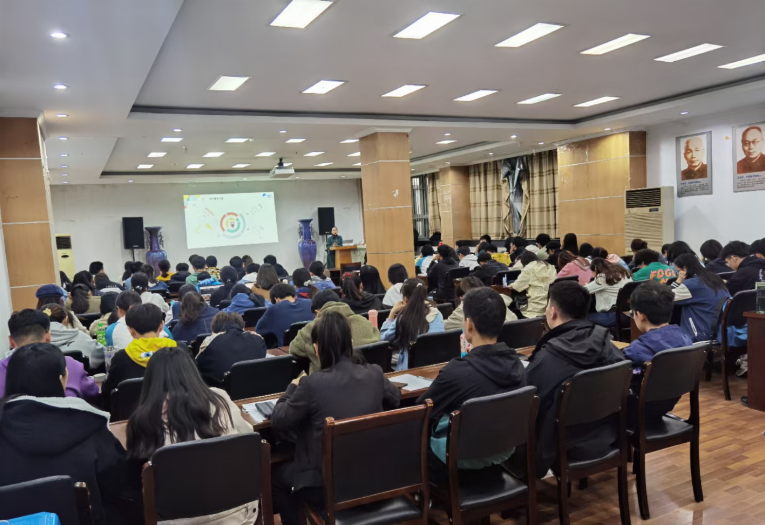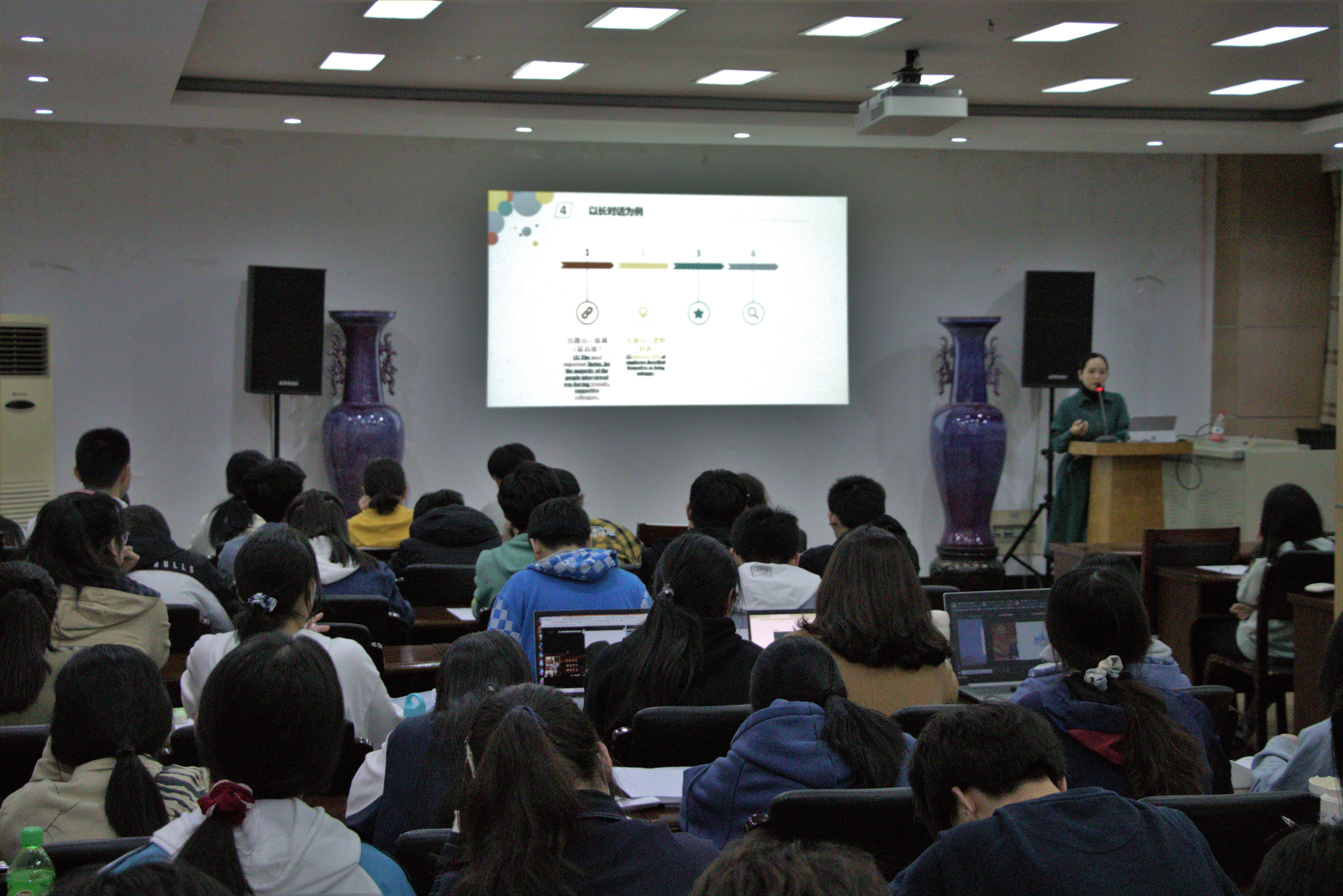 4月9日晚肉漫屋 六级英语专题培训讲座在生科楼E1001报告厅顺利举行,主讲人为新航道英语机构陈小梅老师,学院100余名本科生积极参加了此次讲座。