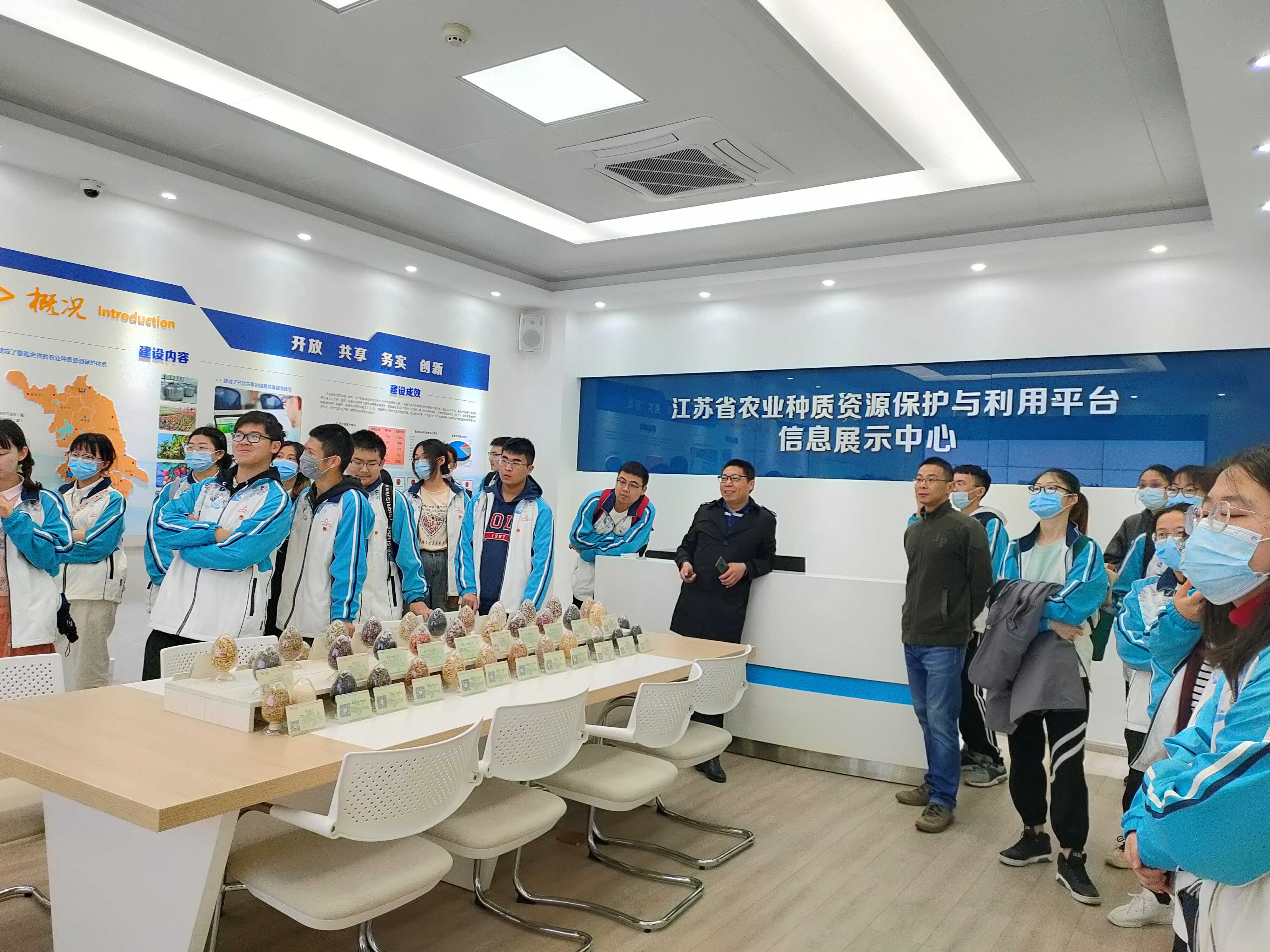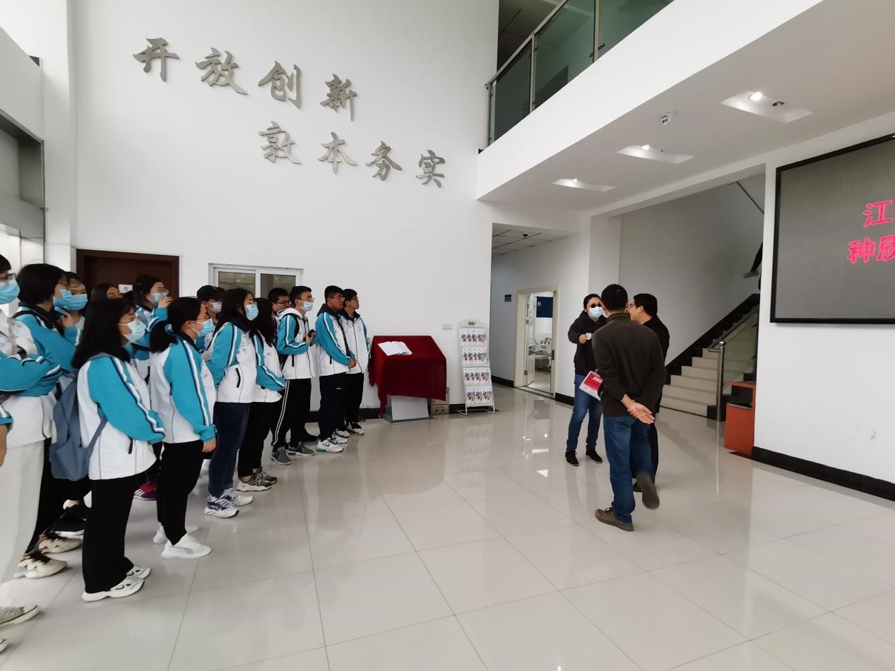 在蒋彦婕老师的带领下,同学们来到江苏省种质资源保护与利用研究中心。之后,颜伟主任亲自向大家介绍了研究中心、种质资源的一些样本、种质资源的重要性、现有的保护种质资源的措施、国家种质资源的分布等内容,并带领大家参观了一下种子中期保存库。