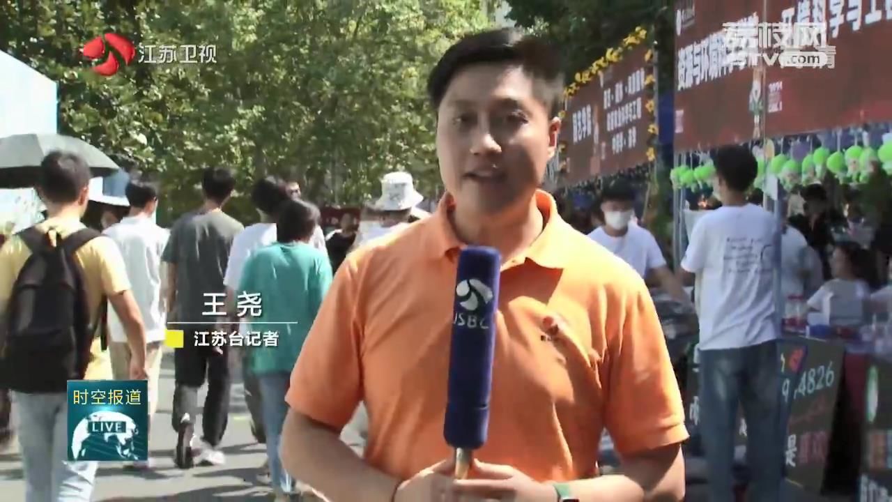 江苏台记者王尧说:“这里是肉漫屋 。为了迎接新生开学,学院们结合各自的专业特色搭建了10多个‘迎新帐篷’,推出了精彩纷呈的迎新活动。”