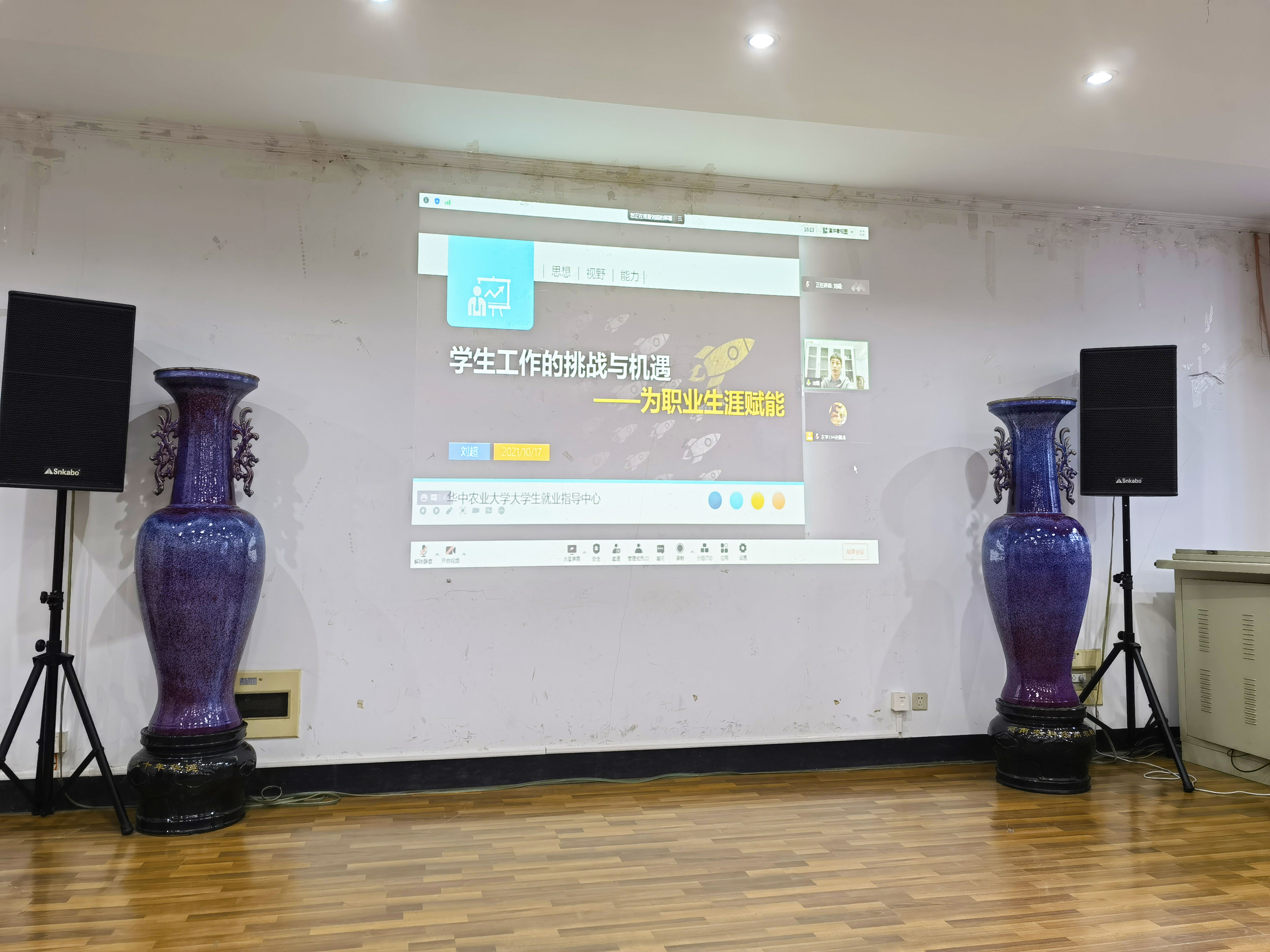10月17日下午,肉漫屋 2021-2022学年学生组织主要学生干部培训会在生科楼E1001召开,本次培训会邀请到华中农业大学的刘超老师为大家带来 “学生工作的挑战与机遇—为职业生涯赋能”主题分享,学院本科生辅导员孙小雯、学生组织主要学生干部参加了此次培训。